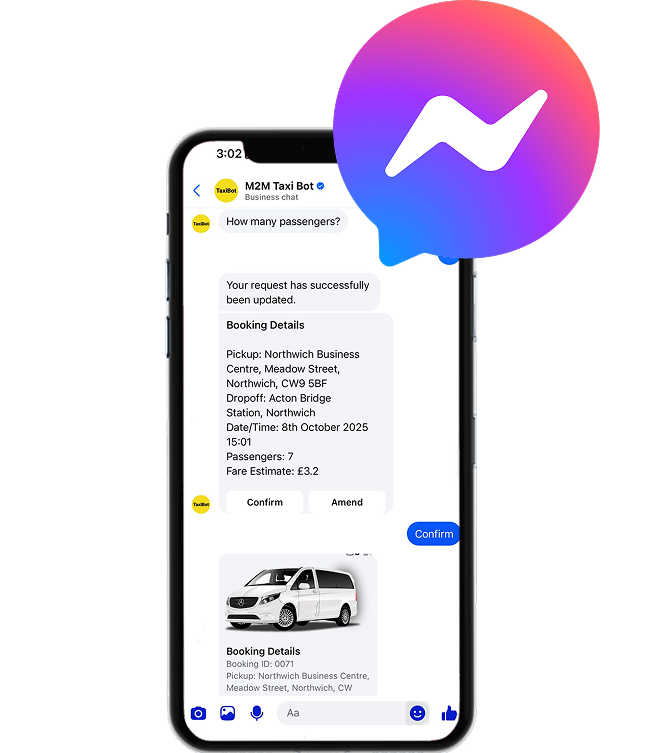 Give your customers a premium experience with our fully automated Facebook Messenger Taxi Chatbot. Available 24/7, it makes booking fast, easy, and familiar—right where your customers already are.