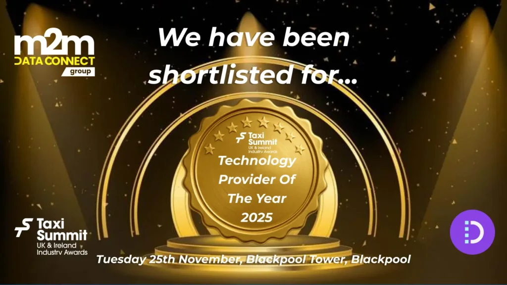 M2M TaxiBot is proud to play a key role in M2M Data Connect Group’s shortlisting for the Technology Provider of the Year award at the upcoming Taxi Summit Awards in Blackpool this November.